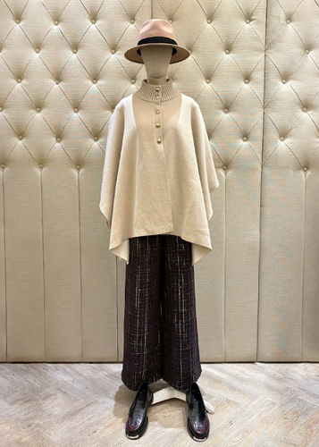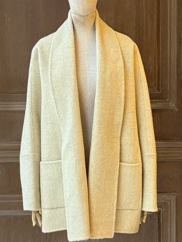 MCLAURA 雙層羊絨披肩式短版外套 l 淺灰黃