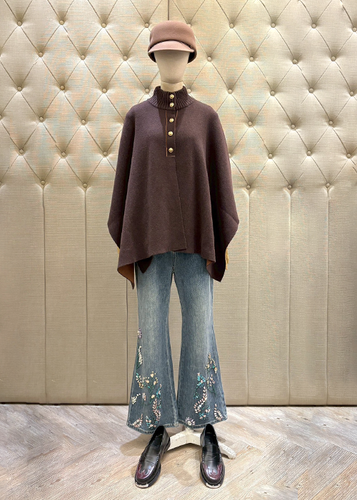 MCBONNIE 皇家金扣斗篷羊絨外套 l 咖啡