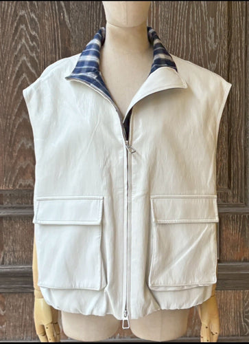 MCDIVA 環保蛋白皮格子內襯皮背心|燕麥白