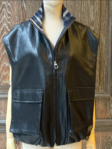 MCDIVA 環保蛋白皮格子內襯皮背心|黑