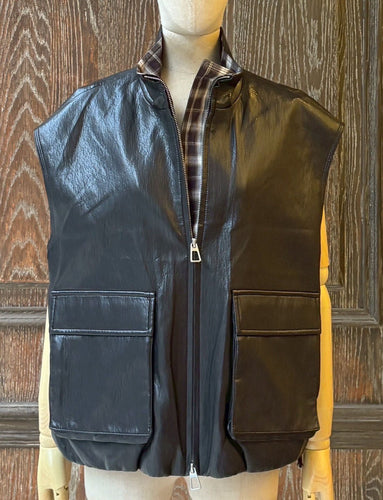 MCDIVA 環保蛋白皮格子內襯皮背心|深咖啡