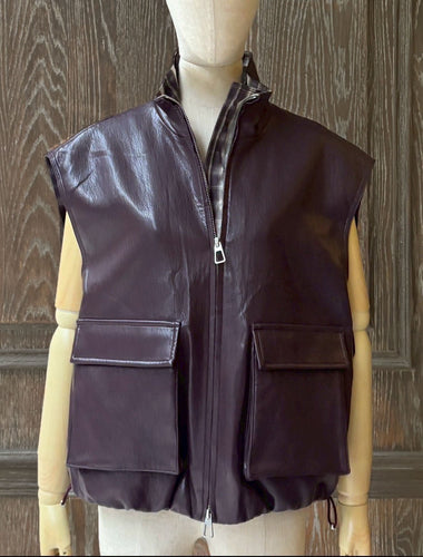 MCDIVA 環保蛋白皮格子內襯皮背心|酒紅