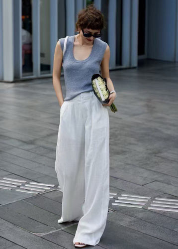 MCMANDY 棉麻打折西裝寬褲|白
