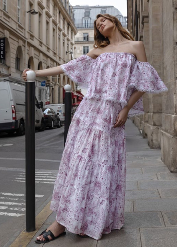 BliteVERMENTINO 蝴蝶花園雷斯麻料印花長裙 | 紫红