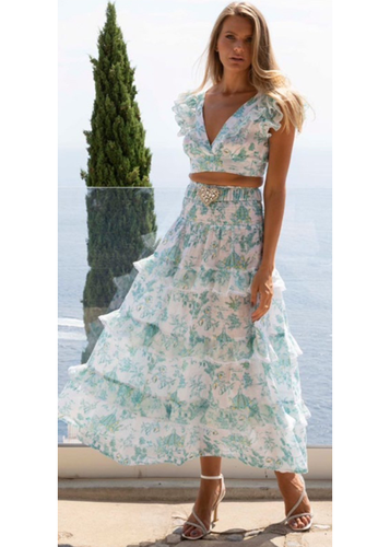 BliteCAYMAN 法式古典印花蛋糕長裙 | 薄荷綠