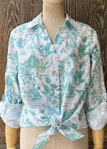 BliteNODO 古董麻料印花綁帶長袖襯衫 | 薄荷綠