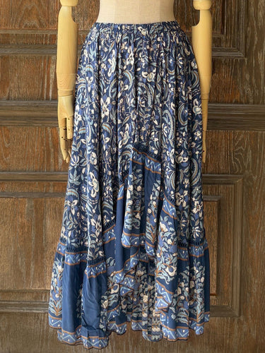 MJL67 佩斯利印花前短後長裙|靛藍