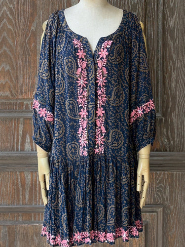 MJH50 露肩佩斯利粉紅繡花短洋裝|藍綠