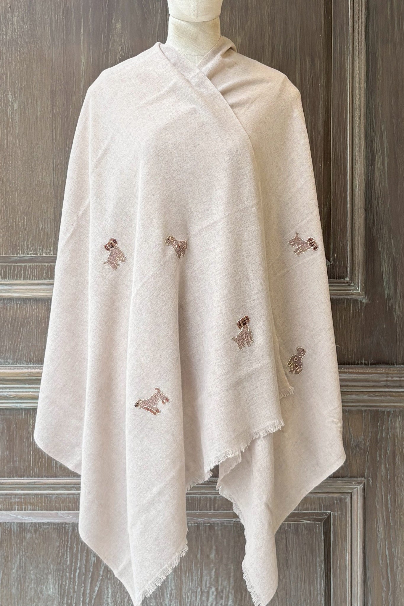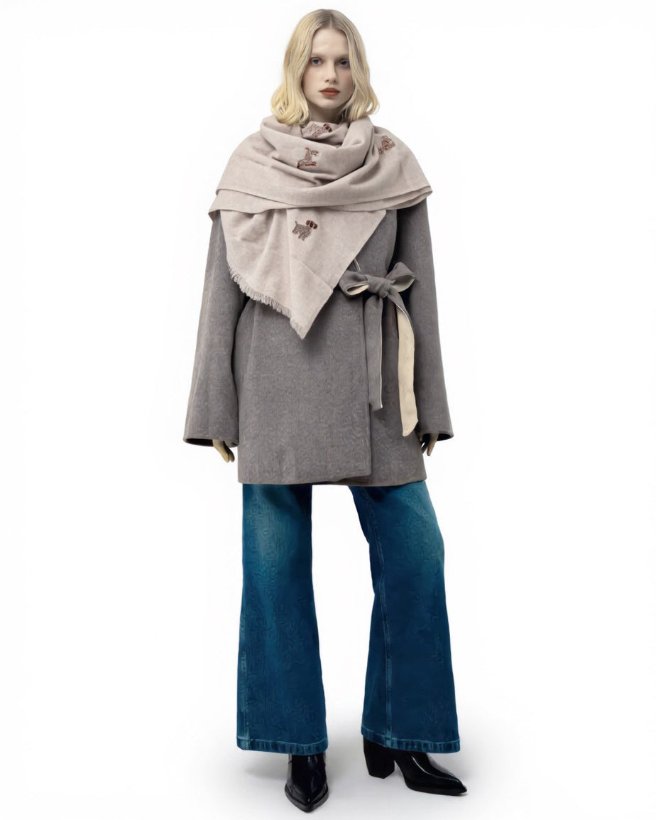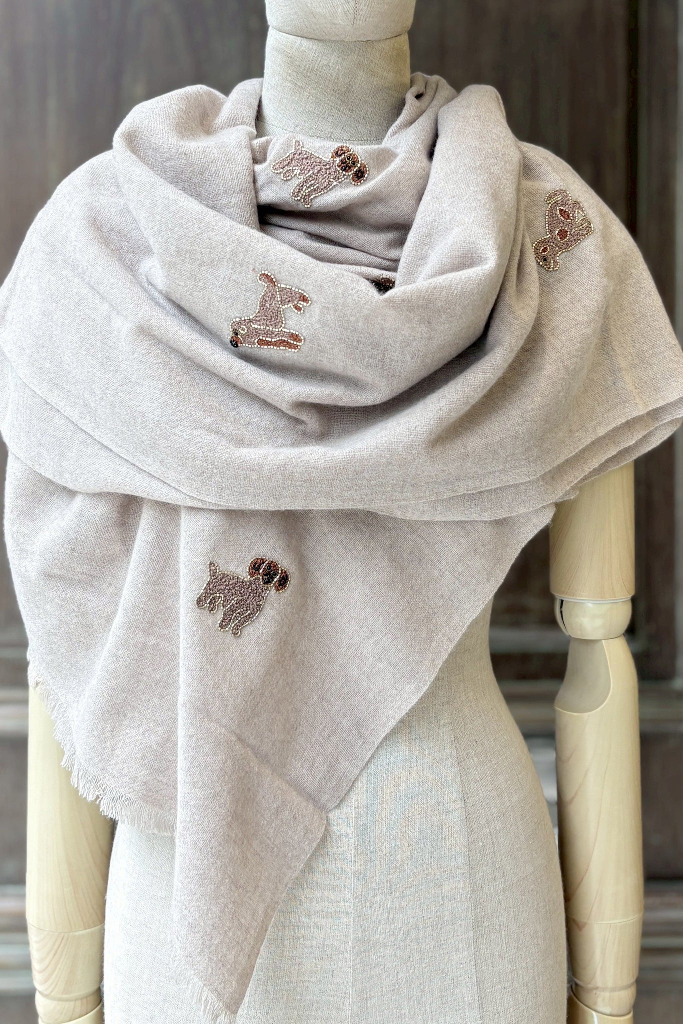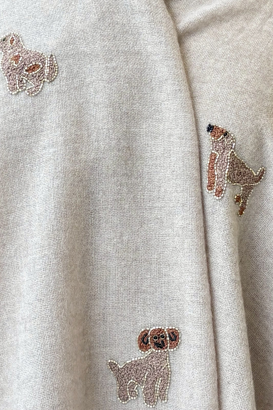 CIC24473小狗金珠珠刺繡羊毛圍巾
