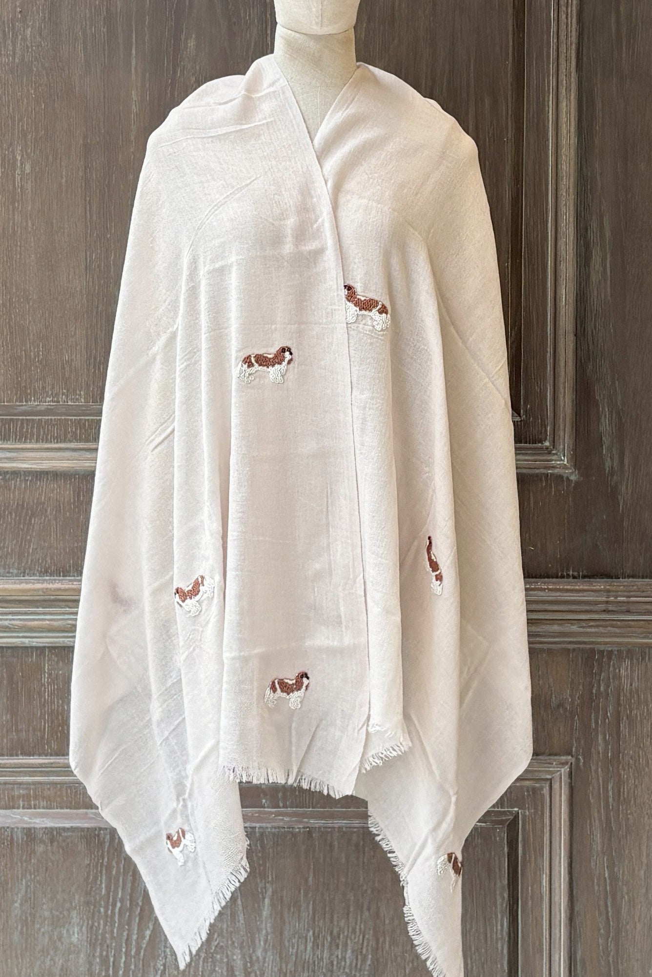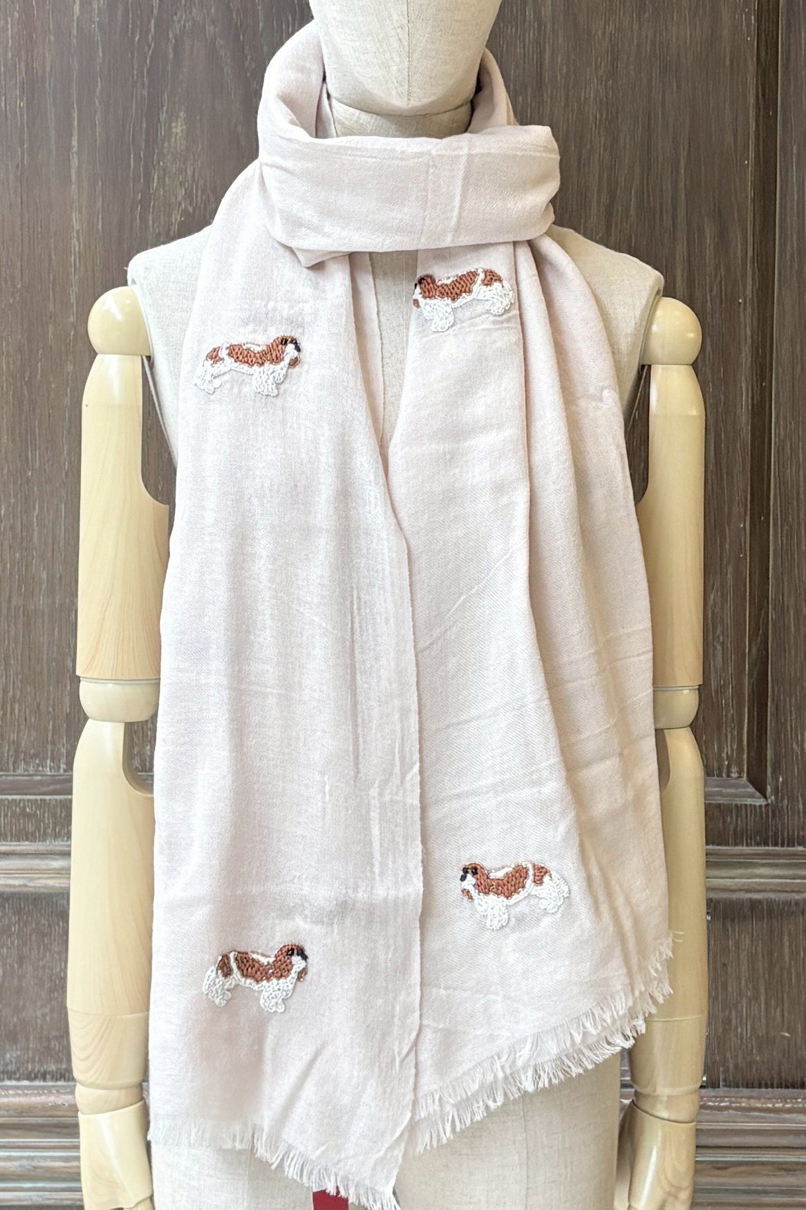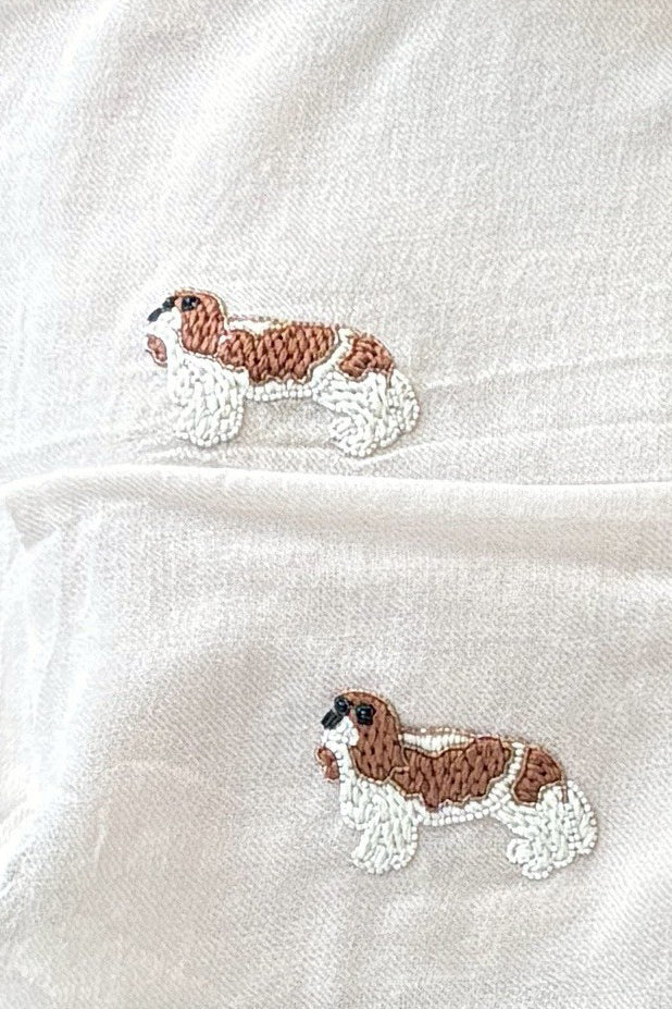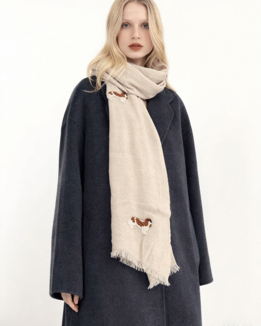 CIC24473小臘犬白珠珠刺繡羊毛圍巾