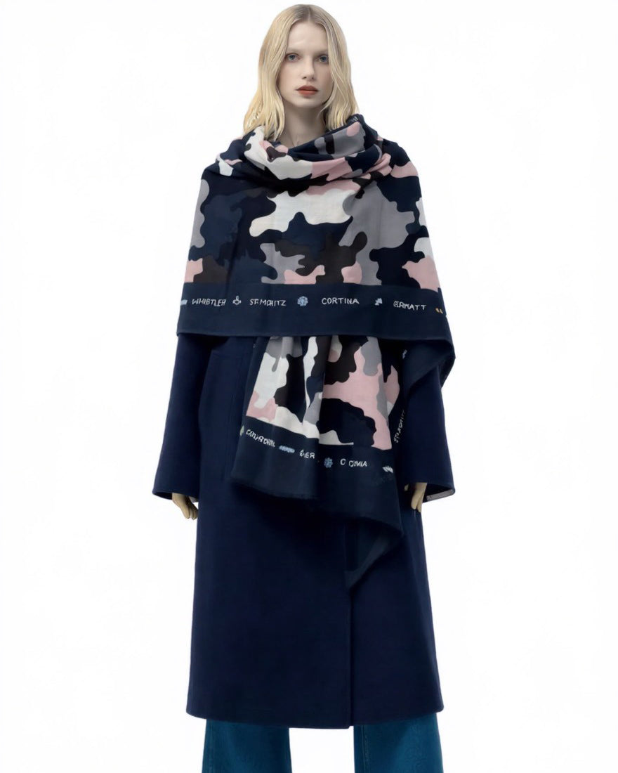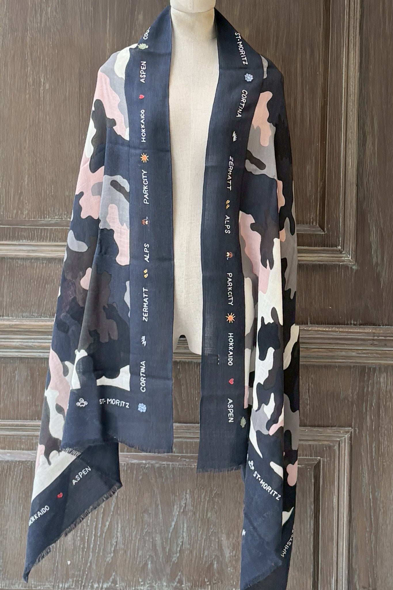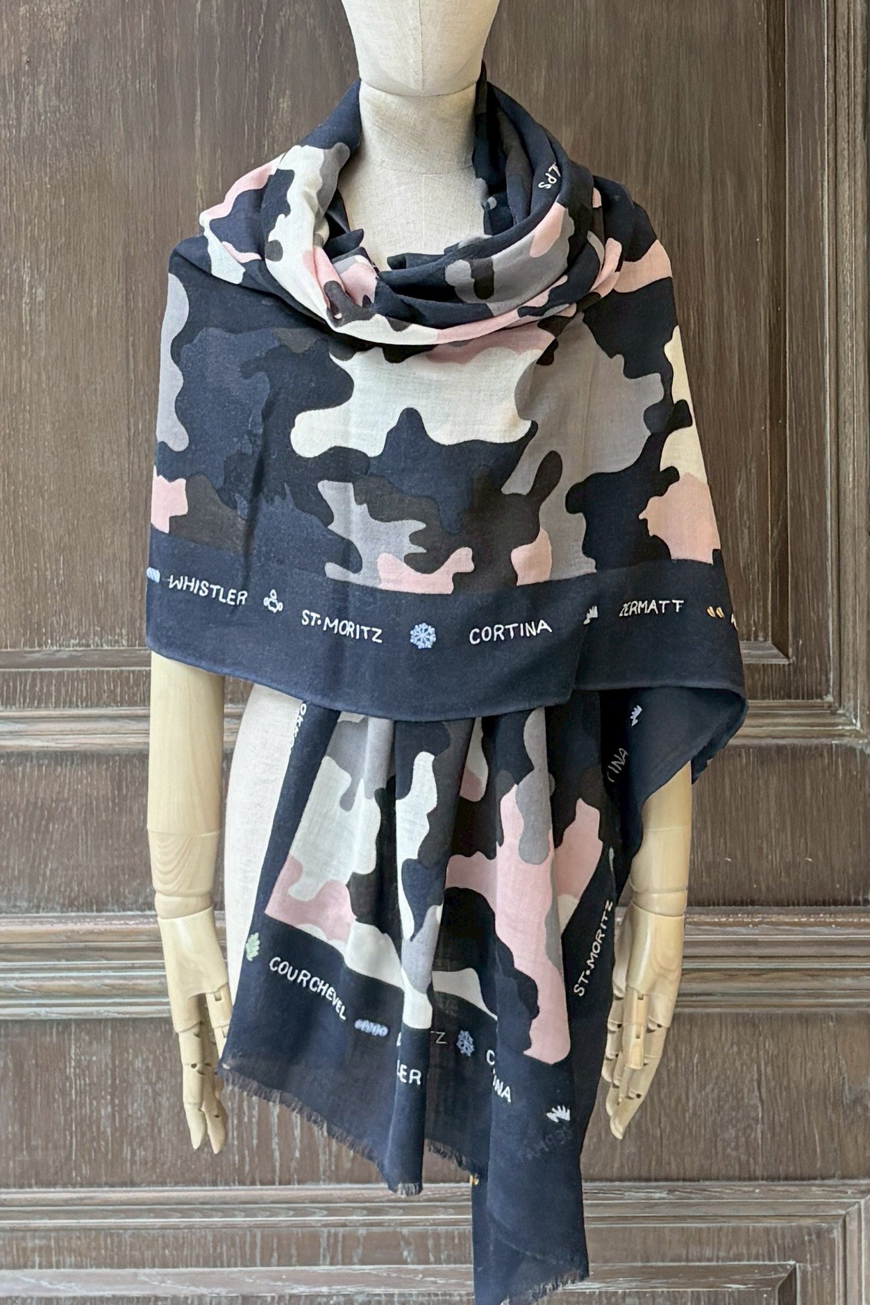CIC24559迷彩刺繡羊毛圍巾(灰粉)