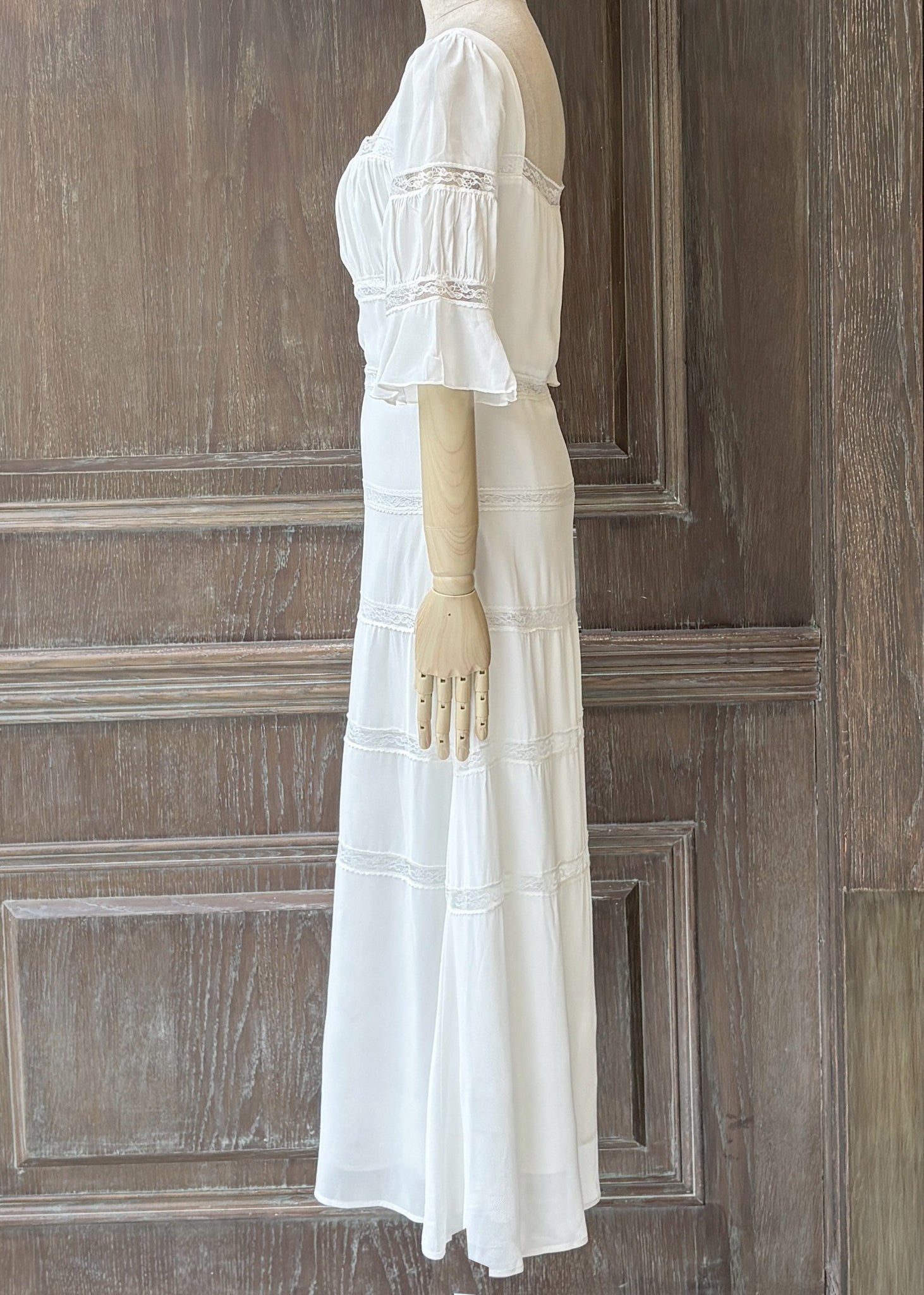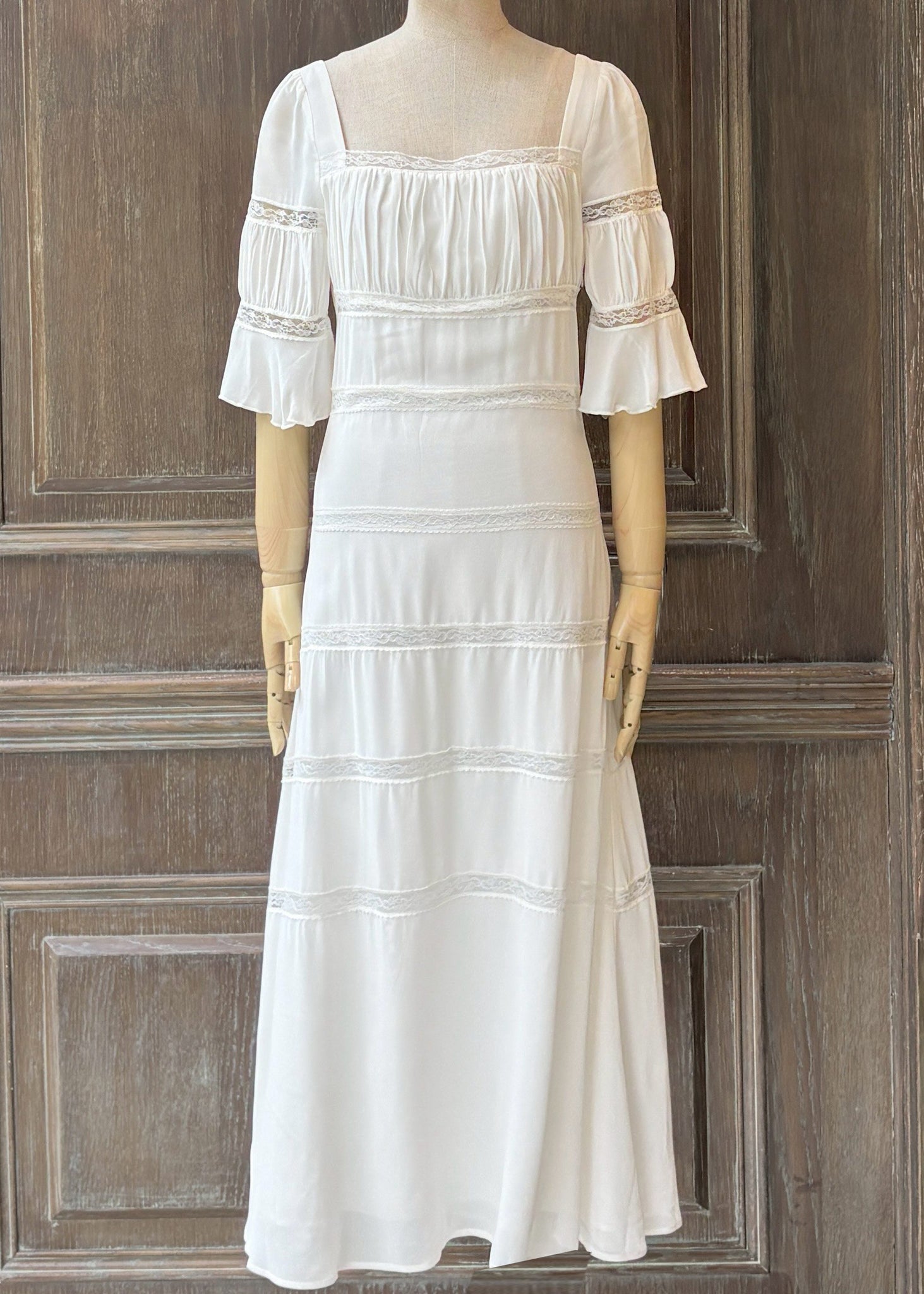 MCMONICA小蕾絲方領復古短袖洋裝(米白)