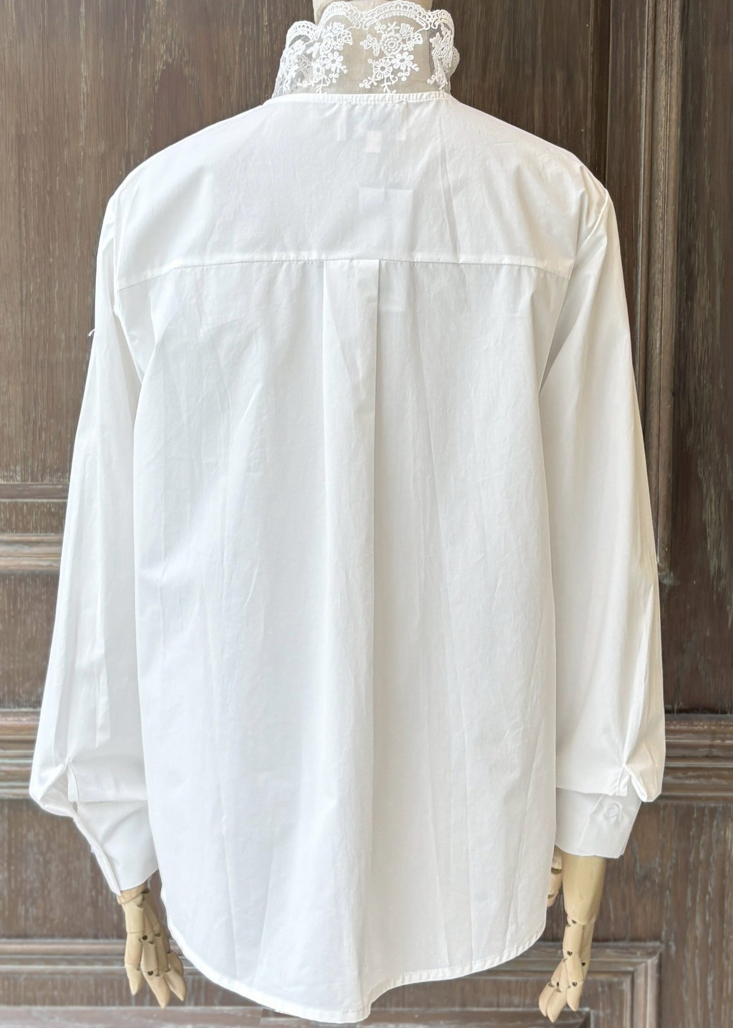 MCRENE蕾絲領白色長袖襯衫(白)