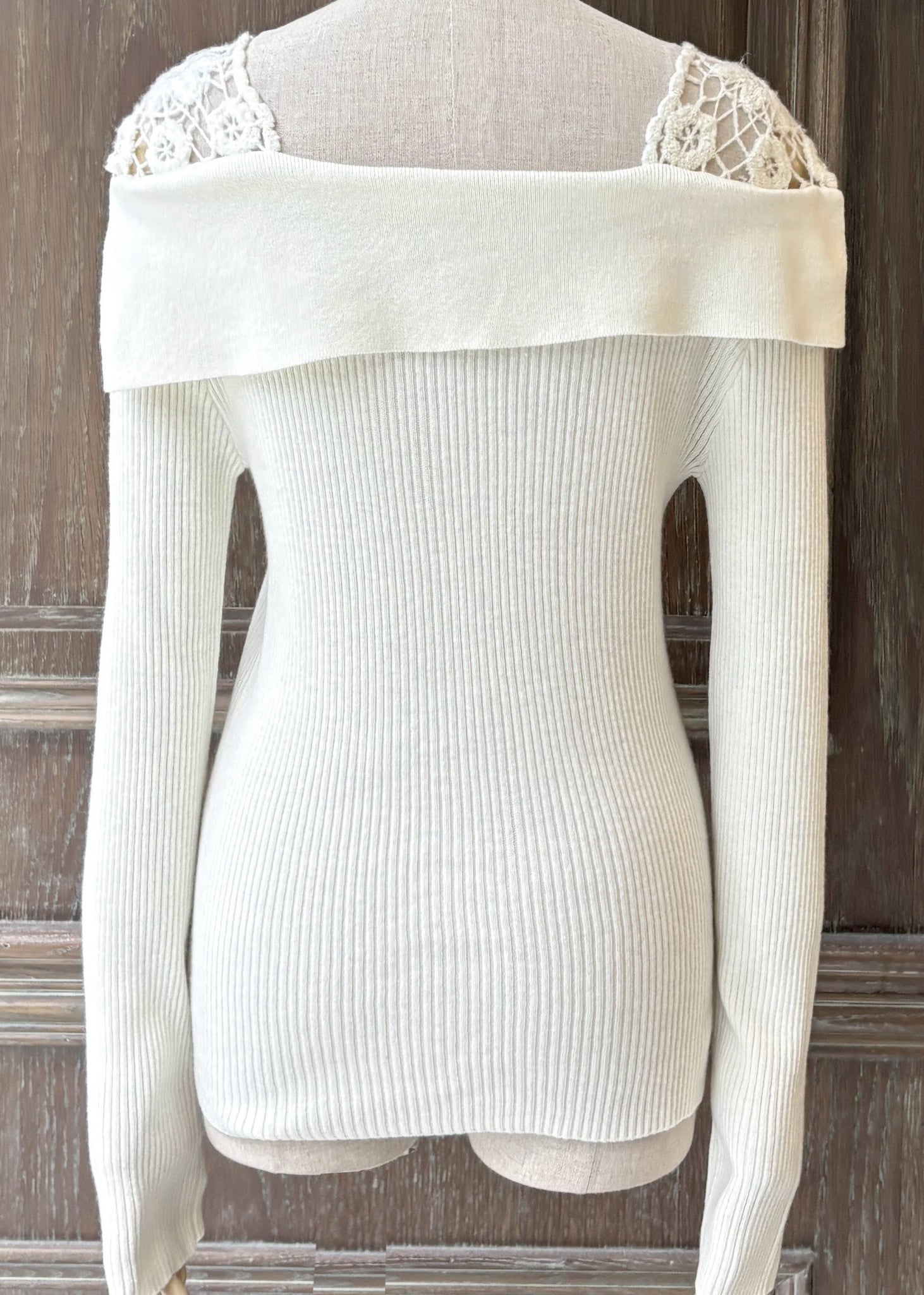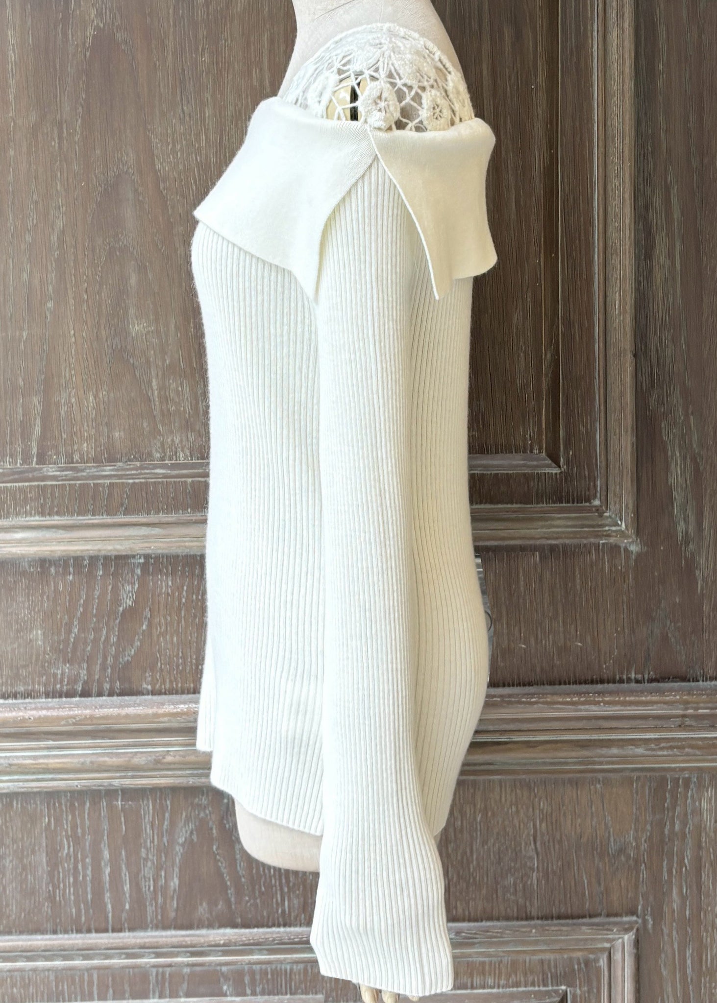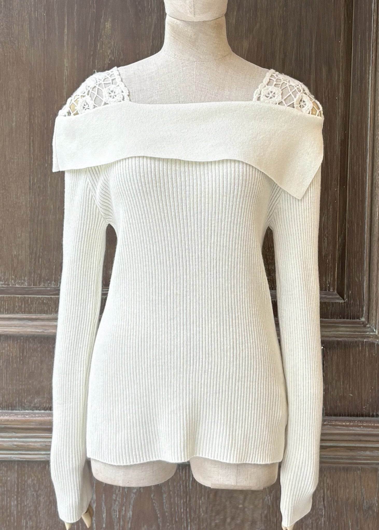 MCROSEANNA鉤織簍空露肩長袖毛衣(白)