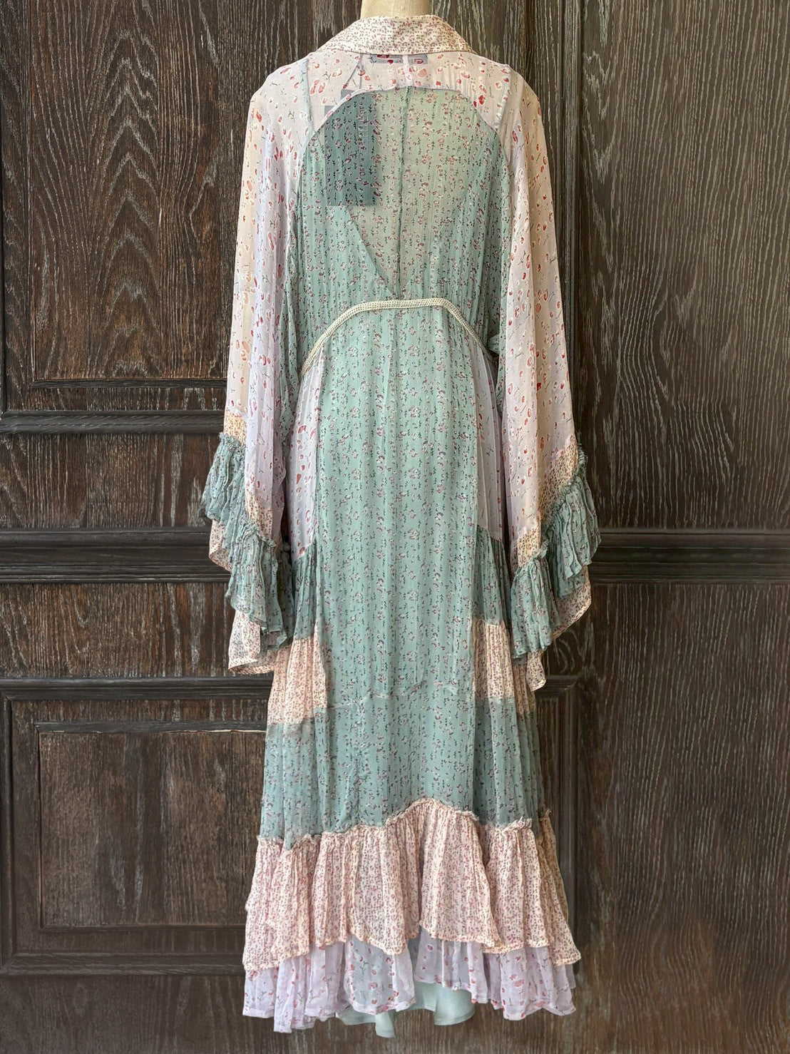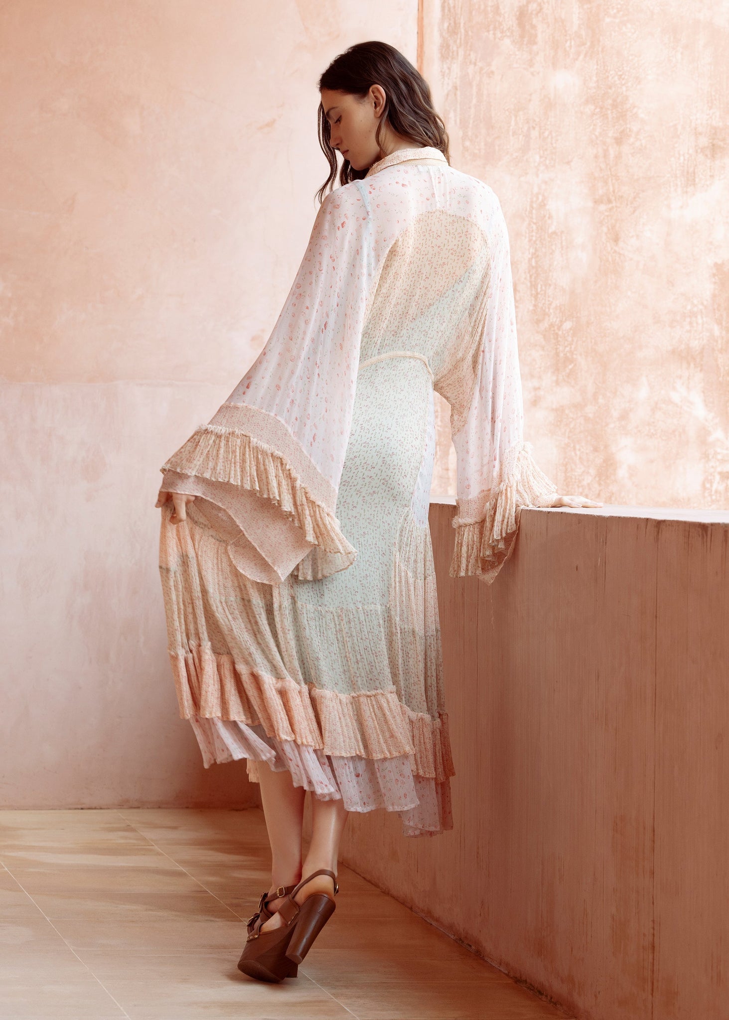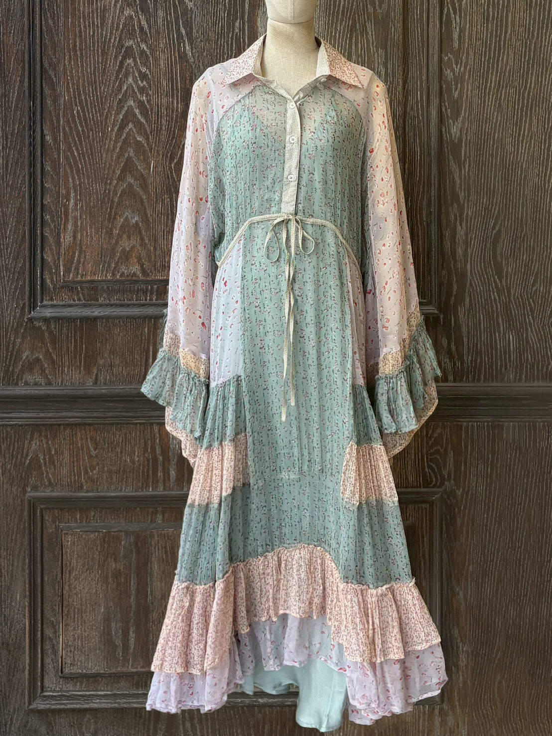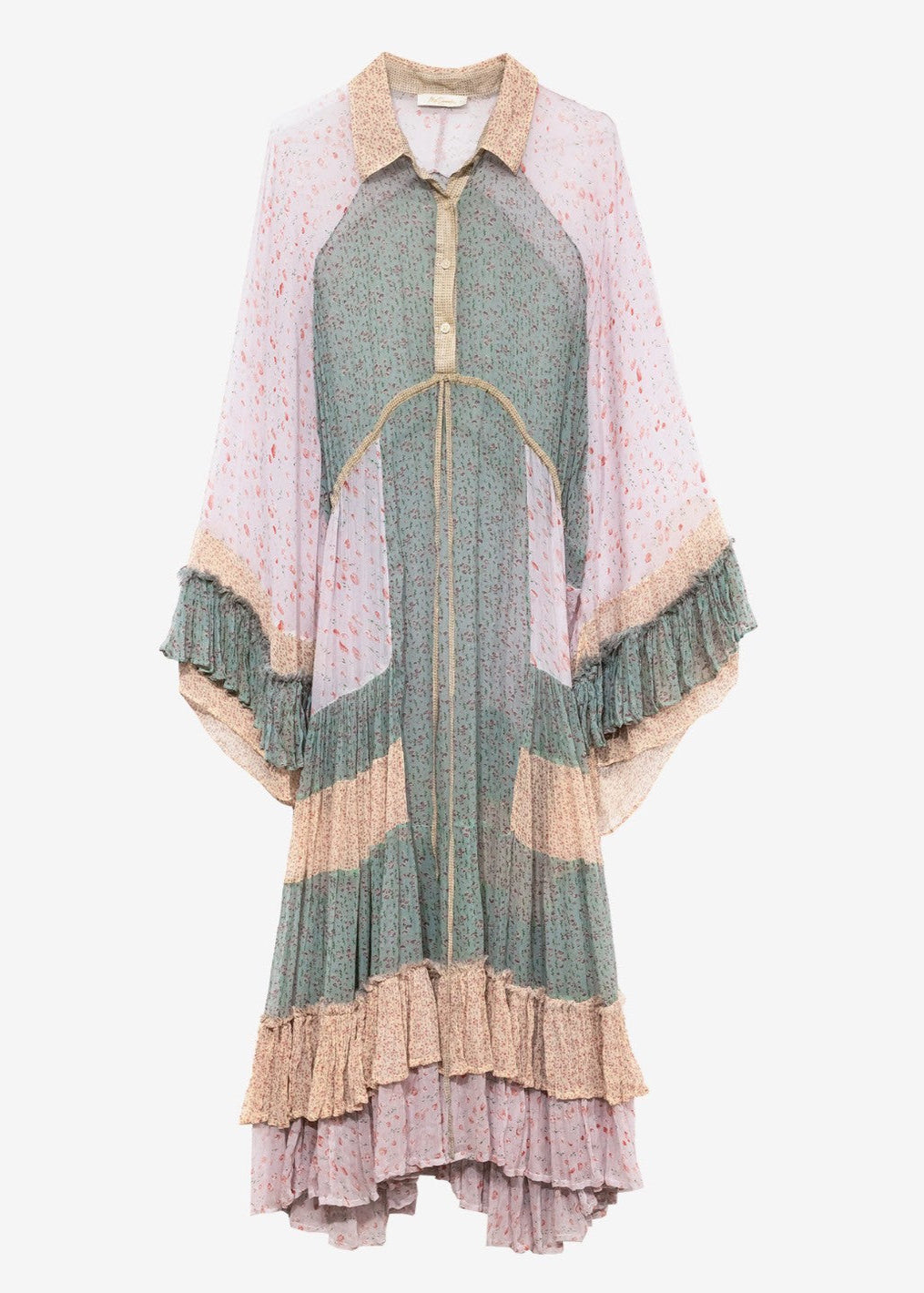 MDLUBUD 百衲印花蛋糕裙襬長袖洋裝 | 秋香綠