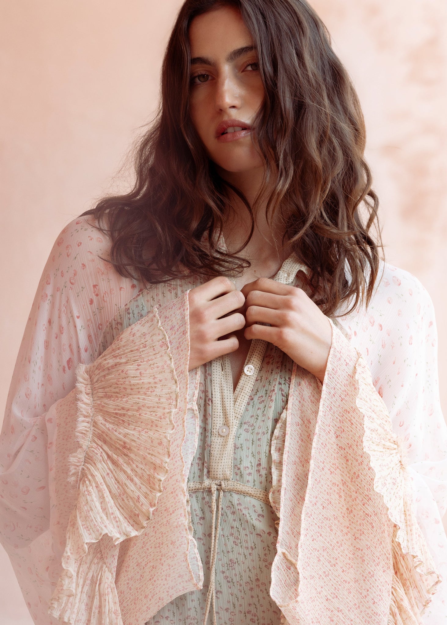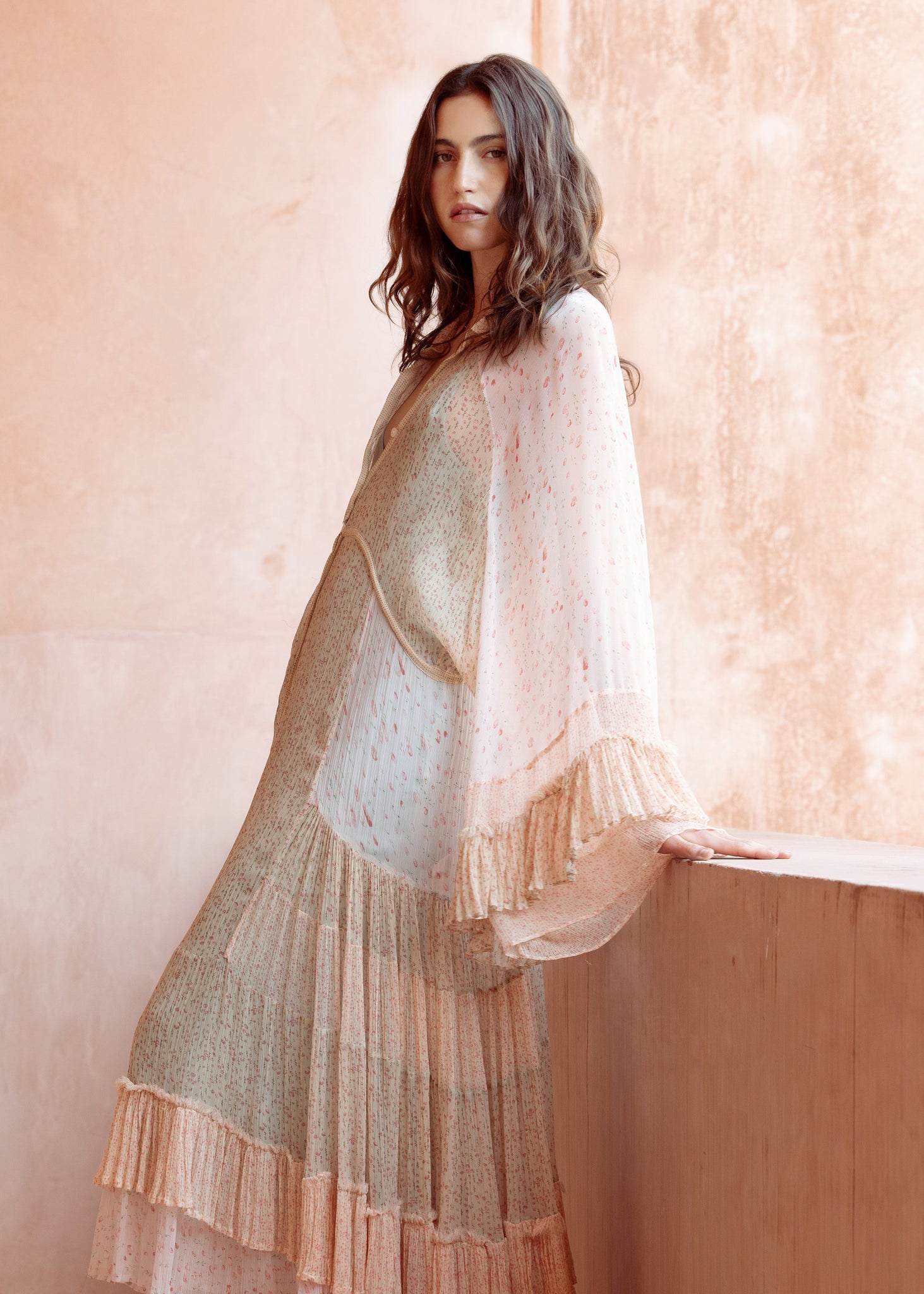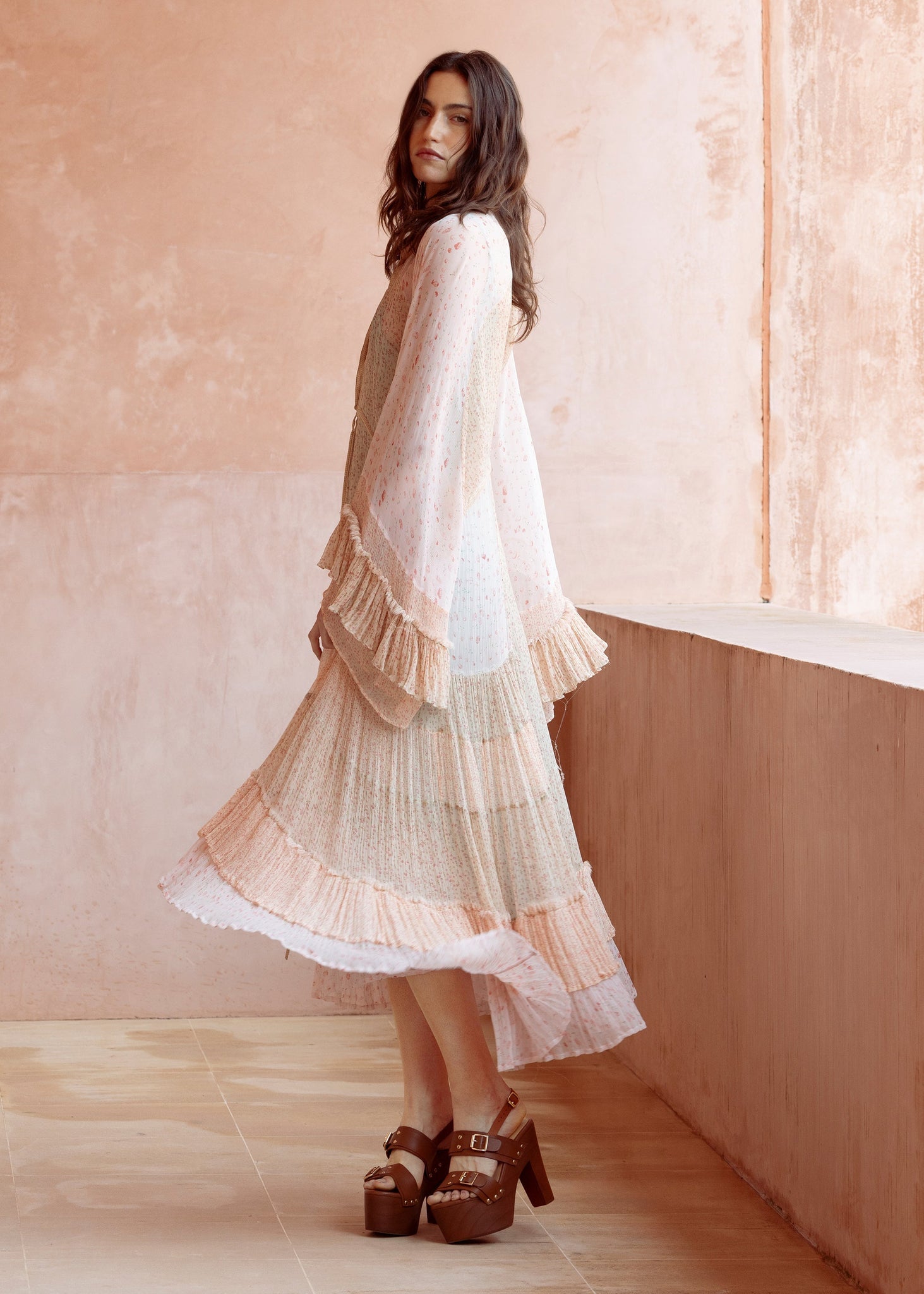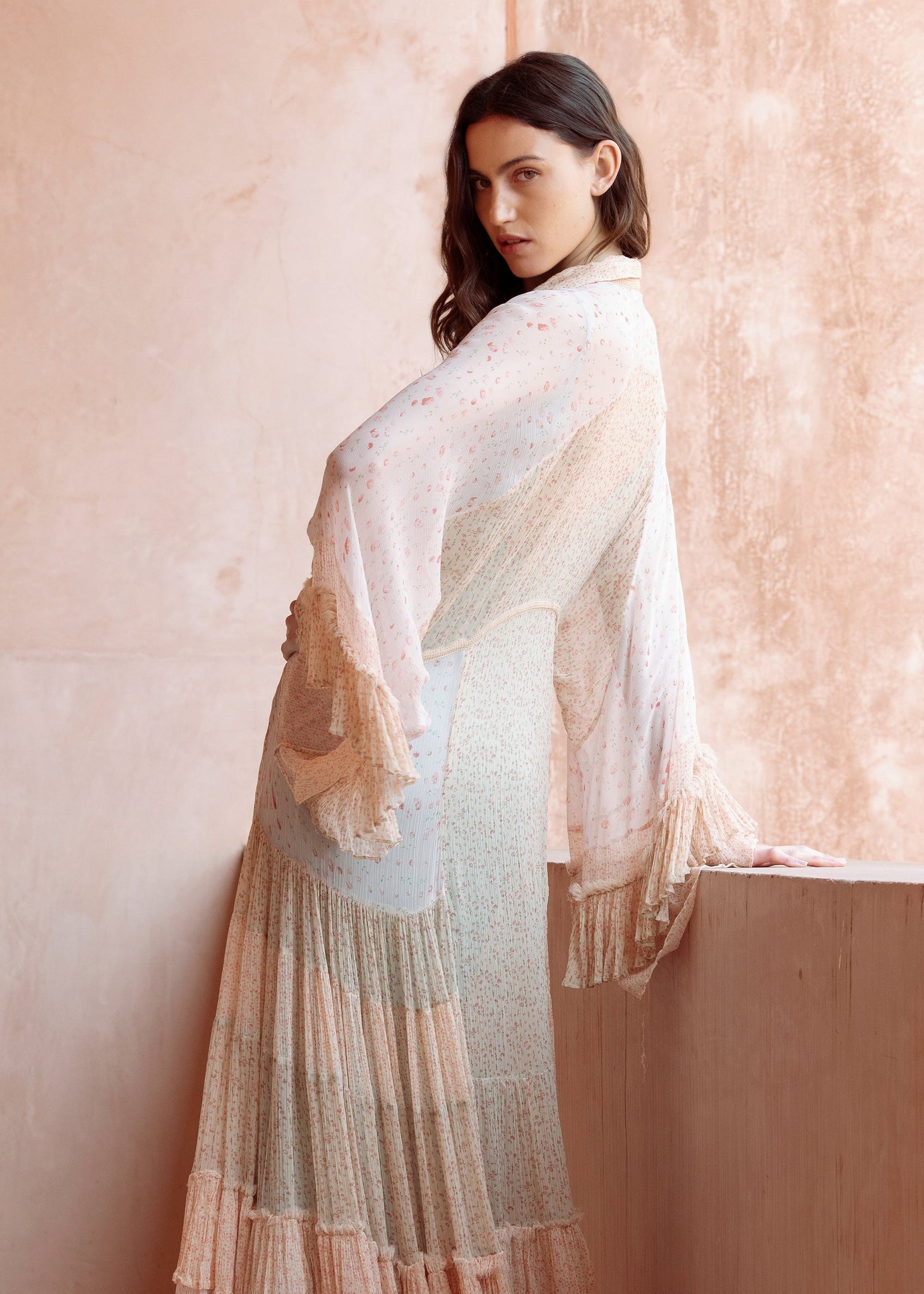 MDLUBUD 百衲印花蛋糕裙襬長袖洋裝 | 秋香綠